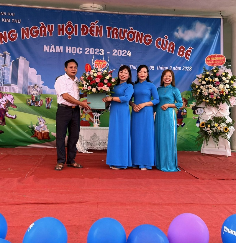 T.M BGH tập thể CBGVNV trong nhà trường cô giáo: Đào Thị Năm - Đảng ủy viên - Bí thư chi bộ - Hiệu trưởng nhà trường cảm ơn tình cảm, sự quan tâm của các quý vị đại biểu, các bậc cha mẹ học sinh đã dành thời gian quý báu về dự ngày hội đến trường của bé và có những bó hoa tươi thắm, quà chúc mừng cô và cháu nhà trường. T.M tập thể CBGVNV nhà trường kính chúc các quý vị đại biểu, các bậc cha mẹ học sinh mạnh khỏe, hạnh phúc luôn quan tâm đến các hoạt động của nhà trường. Chúc các cô giáo và các cháu bước vào năm học mới vui vẻ, mạnh khoẻ, hạnh phúc đạt được nhiều thành tích cao trong năm học 2023 - 2024.