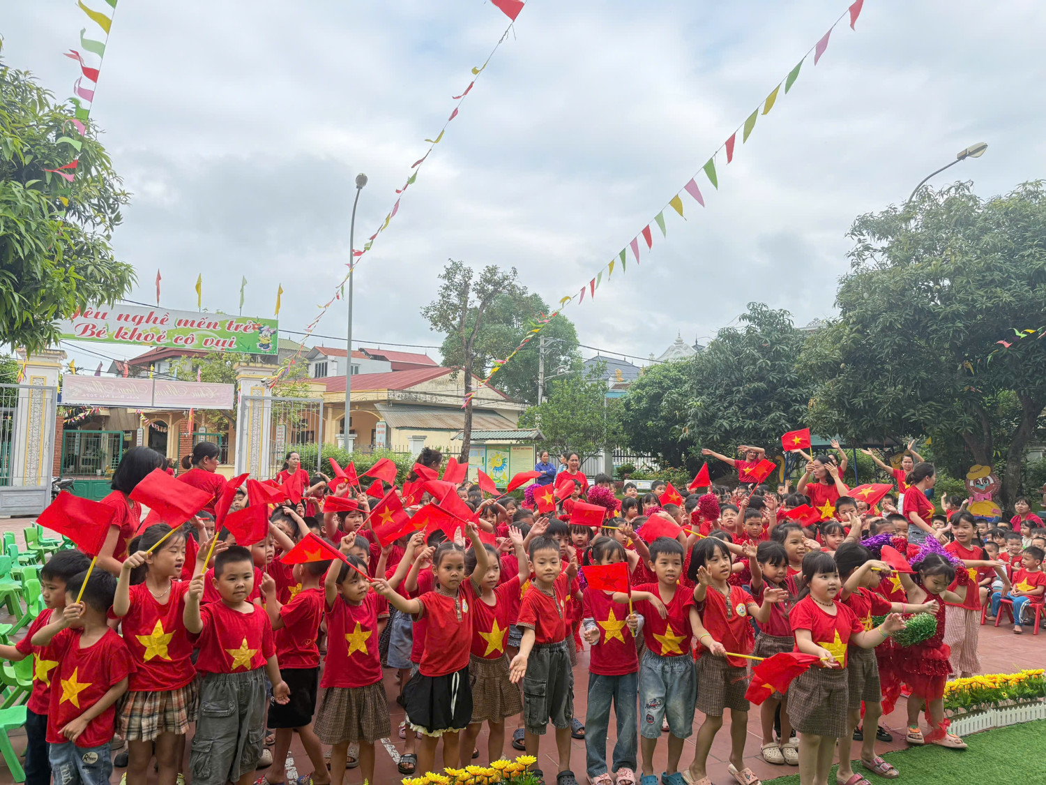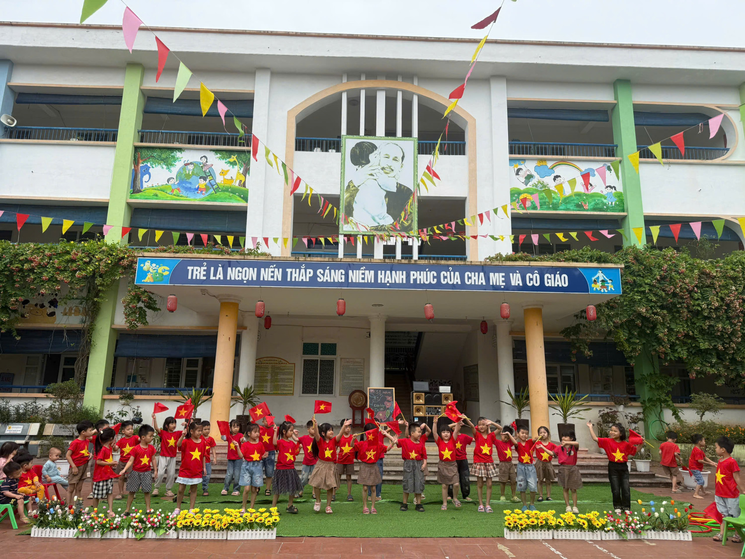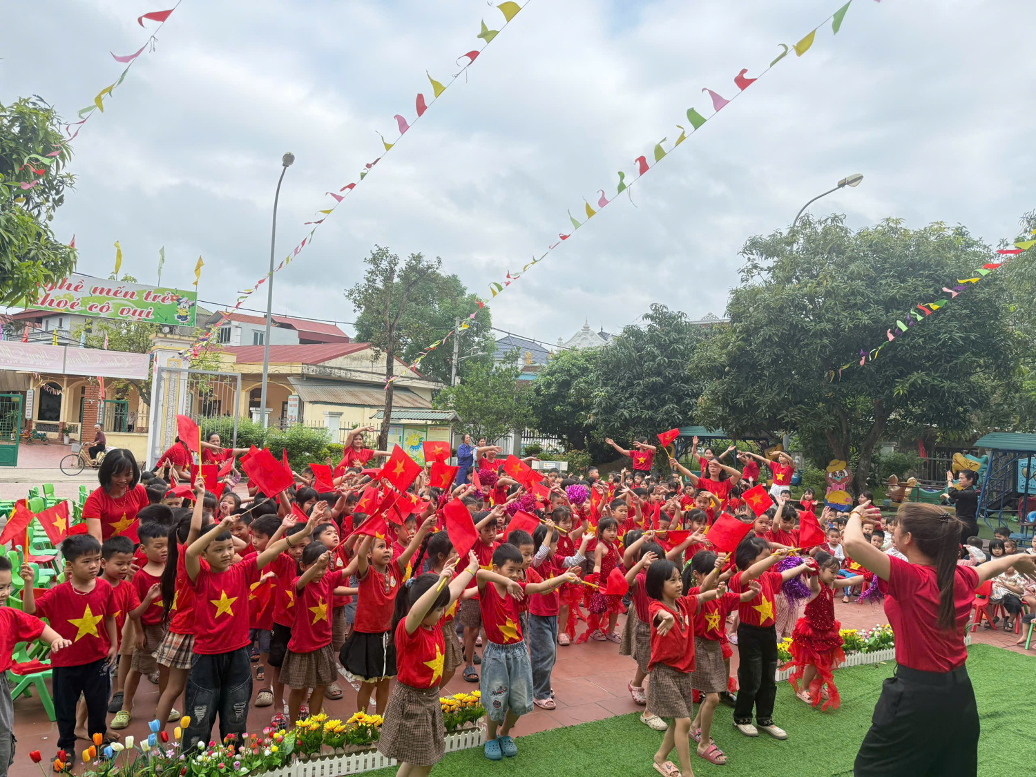 👉Chương trình diễn ra với nhiều hoạt động phong phú như biểu diễn văn nghệ, trò chơi tập thể và các tiết mục sinh động, đáng yêu do chính các bé thể hiện. Thông qua đó, nhà trường đã khéo léo lồng ghép nội dung giáo dục truyền thống, giúp trẻ bước đầu hiểu về ý nghĩa lịch sử của dân tộc, đồng thời hình thành tình yêu quê hương, đất nước.