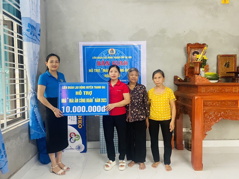 Đ/c Nguyễn Thị Hảo Chủ tich LĐLĐ Huyện Thanh Oai trao Hỗ trợ gia đình đ/c Hà