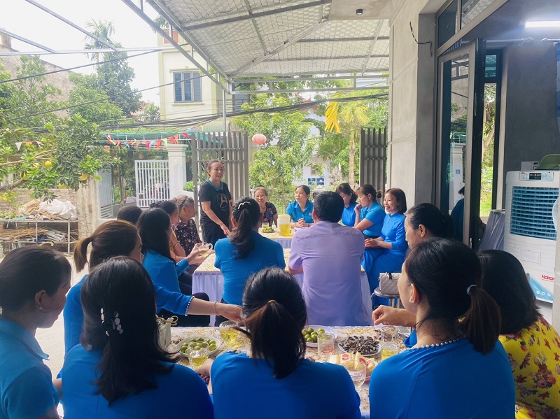 Cùng các bà, các bác, cô dì bên nội bên ngoại gia đình đ/c Lê Thị Thu Hà và tập thể CBGVNV trường MN Kim Thư