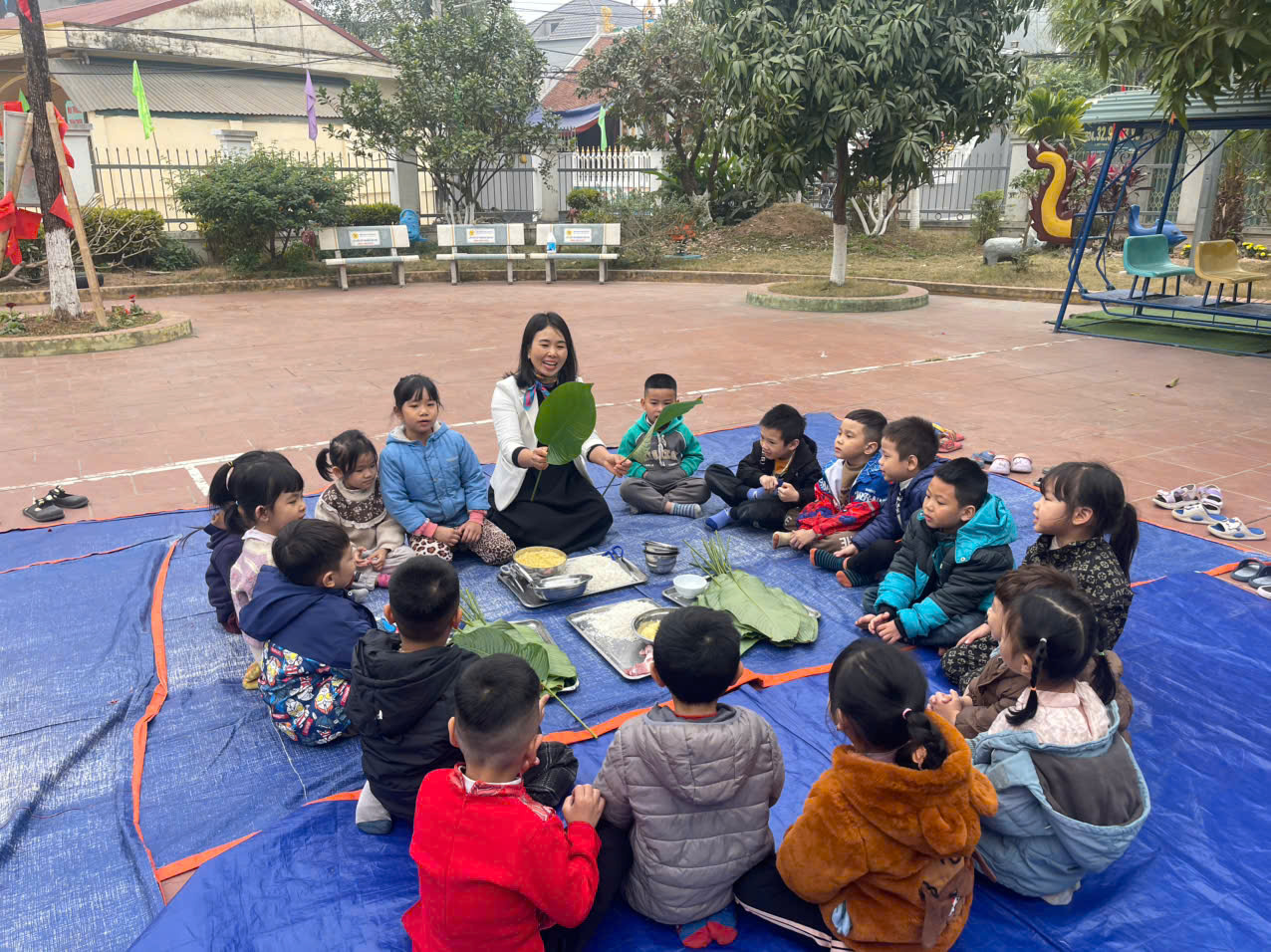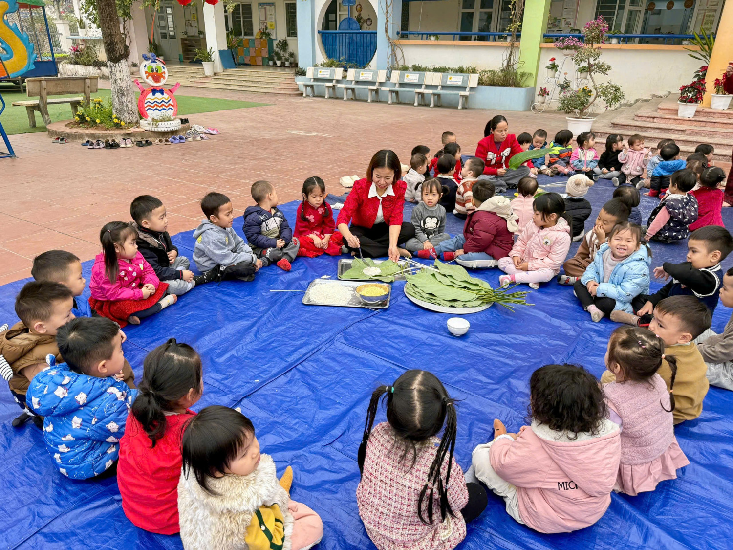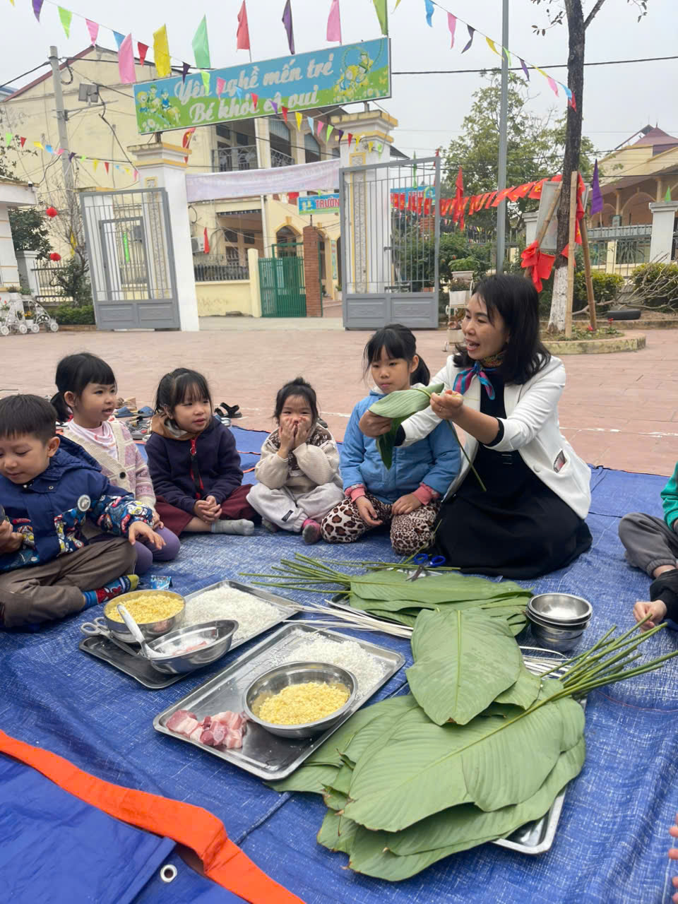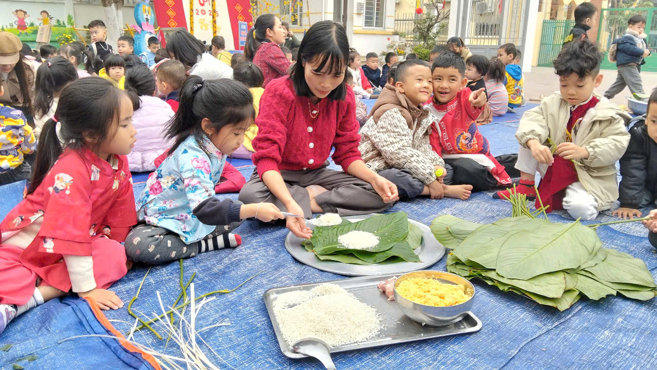 Phong tục gói chưng ngày Tết đã trở thành nét văn hóa truyền thống của dân tộc Việt Nam, được lưu truyền từ xa xưa đến tận ngày nay, thể hiện nét đẹp của nền văn hóa lúa nước. Mỗi khi Tết đến xuân về, người người, nhà nhà lại gói bánh chưng ăn Tết, dâng bánh lên bàn thờ tổ tiên. Để giúp các bé hiểu thêm về nét đẹp Tết cổ truyền của dân tộc sáng nay ngày 20/01/2025 Trường MN Kim Thư tổ chức hoạt động “Gói bánh Chưng” cho các cháu trong trường nhân dịp đón xuân Ất Tỵ 2025