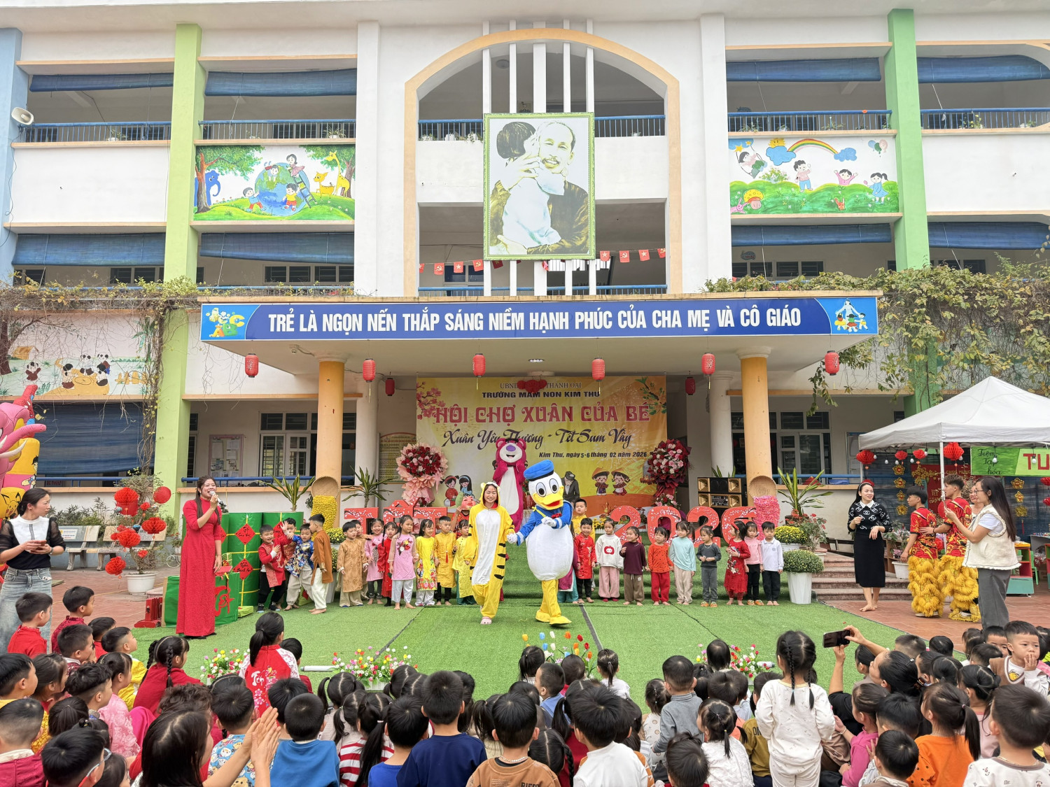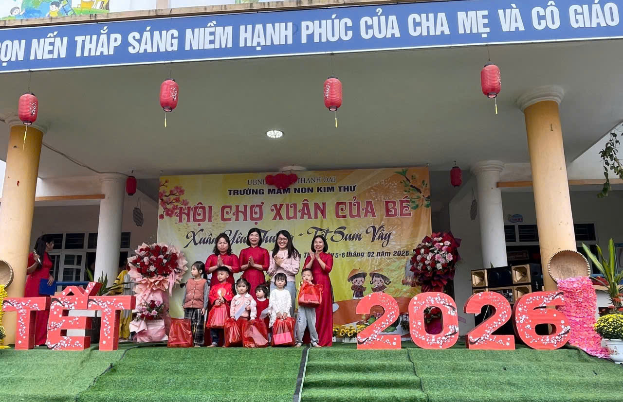 Trong không khí vui tươi, phấn khởi chào mừng thành công Đại hội đại biểu toàn quốc lần thứ XIV của Đảng, kỷ niệm 96 năm Ngày thành lập Đảng Cộng sản Việt Nam, hòa cùng không khí rộn ràng của những ngày cuối năm Ất Tỵ, khi mùa xuân Bính Ngọ 2026 đang về, khi mùa xuân Bính Ngọ 2026 đang về, hôm nay Trường MN Kim Thư cùng Ban ĐDCMTE tổ chức khai mạc hội chợ xuân với chủ đề “Xuân Yêu thương – Tết sum vầy” năm 2026.