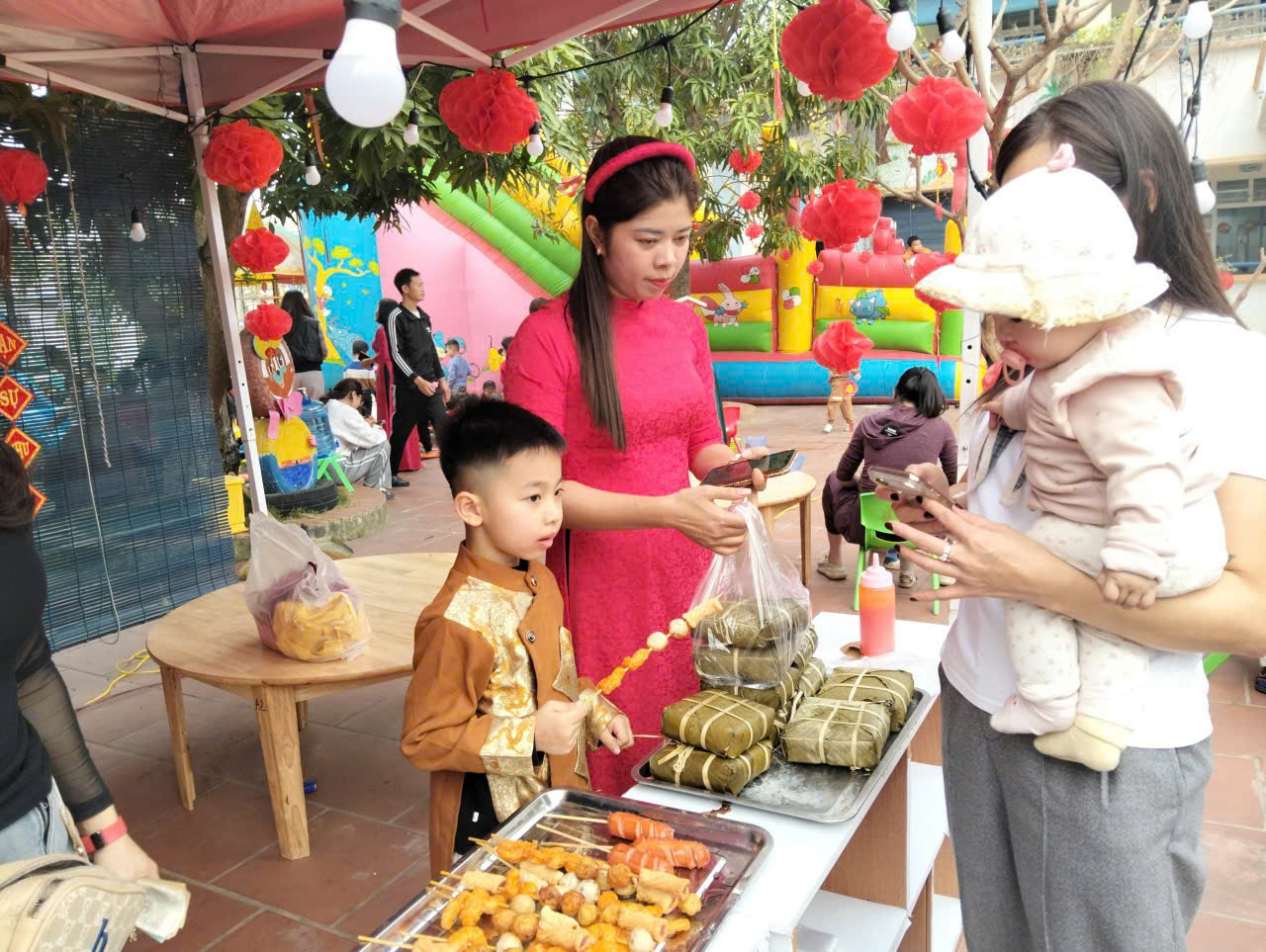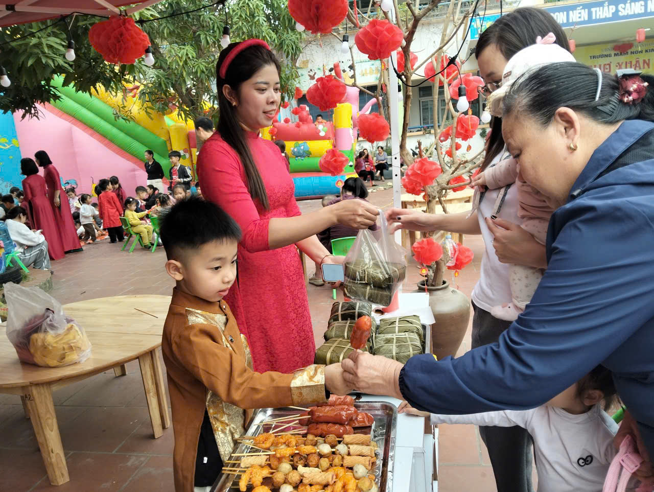 Hội chợ Xuân là hoạt động ý nghĩa nhằm tạo sân chơi bổ ích cho các con, giúp các con được trải nghiệm không khí Tết cổ truyền của dân tộc; đồng thời là dịp để nhà trường, phụ huynh và cộng đồng cùng chung tay sẻ chia, lan tỏa yêu thương, đặc biệt là dành sự quan tâm, động viên đến các con học sinh có hoàn cảnh khó khăn. Trong chương trình hôm nay, nhà trường đã trao tặng những phần quà Tết yêu thương cho 06 con học sinh có hoàn cảnh đặc biệt khó khăn với tổng số tiền 6.600.000đồng. Những phần quà này là kết quả của sự chung tay, ủng hộ đầy nghĩa tình từ tập thể CBGVNV nhà trường; các bậc cha mẹ trẻ; cùng nhân dân địa phương và sự quan tâm, ủng hộ của anh Đỗ Văn Long – Thôn Văn Khê, xã Tam Hưng, thể hiện tinh thần tương thân tương ái, sẻ chia yêu thương, giúp các con có thêm niềm vui và động lực để đón Tết cổ truyền trong không khí ấm áp, đủ đầy hơn. Sau đây là một số hình ảnh của hoạt động: