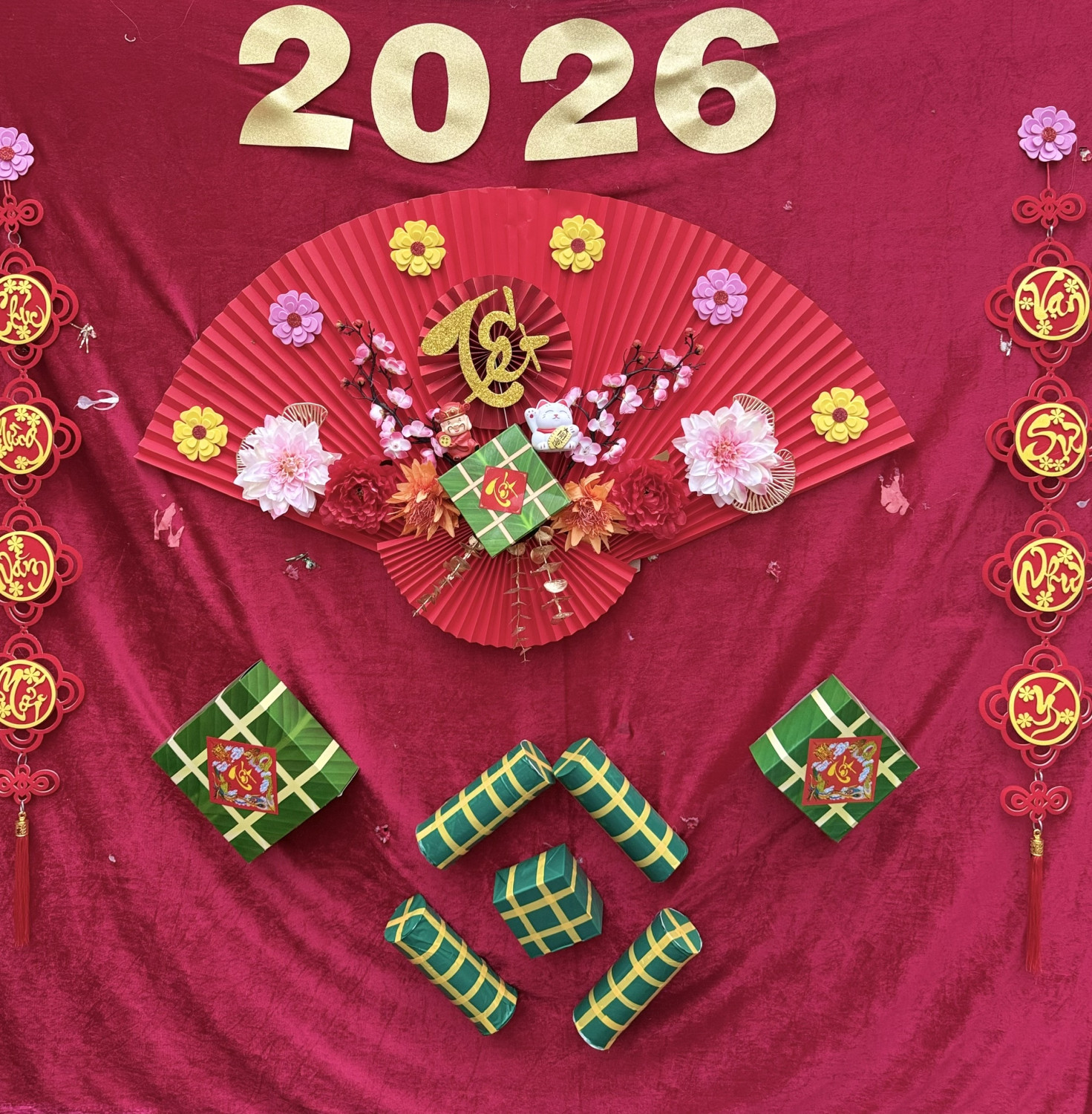 Cô và trò trường MN Kim Thư hân hoan gói bánh chưng đón Xuân 2026