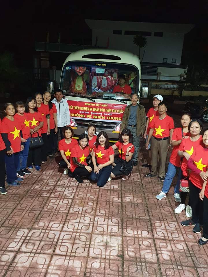 Miền Trung nước ta cũng phải trải qua rất nhiều vất vả, gian khổ đã có rất nhiều chiến sĩ anh dũng hi sinh, nhiều người mất nhà, mất người thân, khi xem những hình ảnh người mẹ ôm con vào lòng khi bị đất đồi sạt lở, các cụ già đã bao ngày không có gì để ăn chắc ai cũng phải chạnh lòng, đau xót. Mọi người dân trên cả nước cũng đã cùng nhau kêu gọi được rất nhiều sự hỗ trợ của tất cả mọi miền tổ quốc cùng nhau hướng về Miền Trung ruột thịt. Nói đến làng Kim Thư, thôn Kim Châu chắc mọi người cũng biết đến Cô: Nguyễn Thị Điểm (Chồng là Nguyễn Văn Cường) sinh năm 1972 ở thôn Kim Châu – xã Kim Thư - Huyện Thanh Oai – TP Hà Nội, bằng tấm lòng nhân hậu của mình cô luôn quan tâm giúp đỡ những người có hoàn cảnh khó khăn. Năm nào cô cũng công đức vào nhà chùa Kim Châu và ủng hộ người dân trong xóm ngoài làng những ngày lễ hội hàng năm, năm 2019 cô đã công đức vào chùa với số tiền 20.000.000 đồng để tu bổ, trùng tu lại chùa, đặc biệt trong đợt lũ lụt miền Trung vừa qua nhà cô cũng đã ủng hộ và kêu gọi mọi người phát tâm ủng hộ giúp đỡ miền Trung bằng cách tổ chức đêm văn nghệ xây góp quỹ, Cô đã cùng mọi người mua chăn ấm, mua quần áo, sách vở và rất nhiều đồ dùng cần thiết để giúp đỡ người dân miền Trung. Được đón nhận rất nhiều tấm lòng ủng hộ cô đã cùng mọi người lên đường đến với miền Trung và trao tận tay cho người dân bị lũ lụt những món quà vô cùng ý nghĩa, ngoài trao tặng đồ dùng, nhu yếu phẩm mỗi hộ gia đình kèm theo một phong bì số tiền: 1.000.000 đồng /hộ gia đình. Cô cùng đoàn đã đến 3 địa điểm sau để trao quà: Trạm y tế thị trấn Khe Sanh, huyện Hướng Hóa, tỉnh Quảng Trị; Huyện Cam Lộ, Thành phố Đông Hà, tỉnh Quảng Trị; xã Cẩm Duệ, huyện Cẩm Xuyên, tỉnh Hà Tĩnh.
