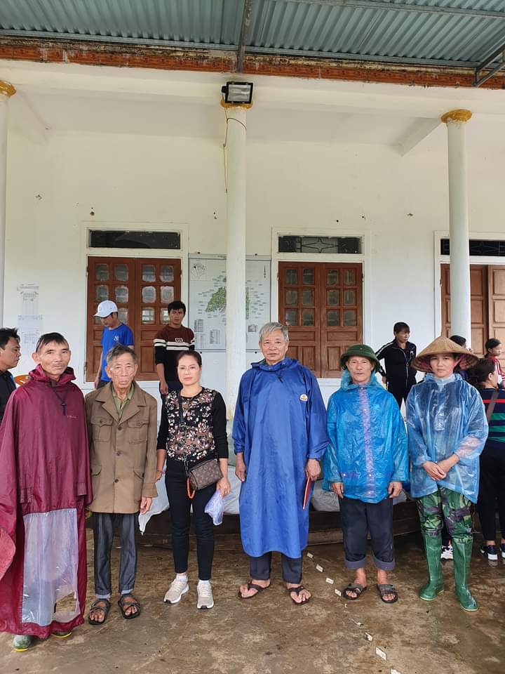 Đoàn đi trao quà từ thiện - Cô Nguyễn Thị Điểm đứng ở giữa trao quà cho người dân Miền Trung