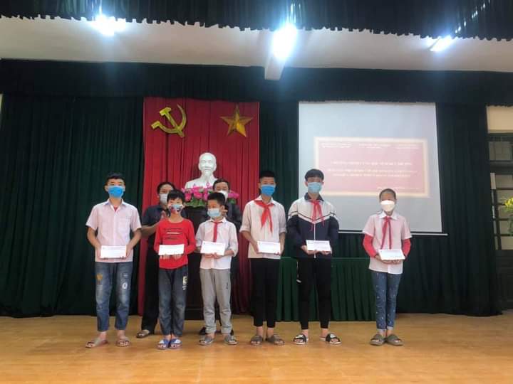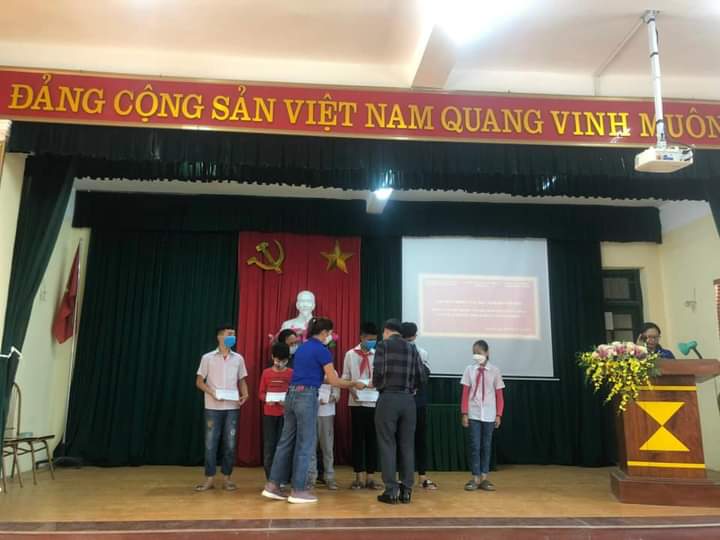 Công ty cổ phần thương mại Sơn Cường công ty của vợ chồng cô đã trao quà và học bổng cho học sinh nghèo xã KimThư