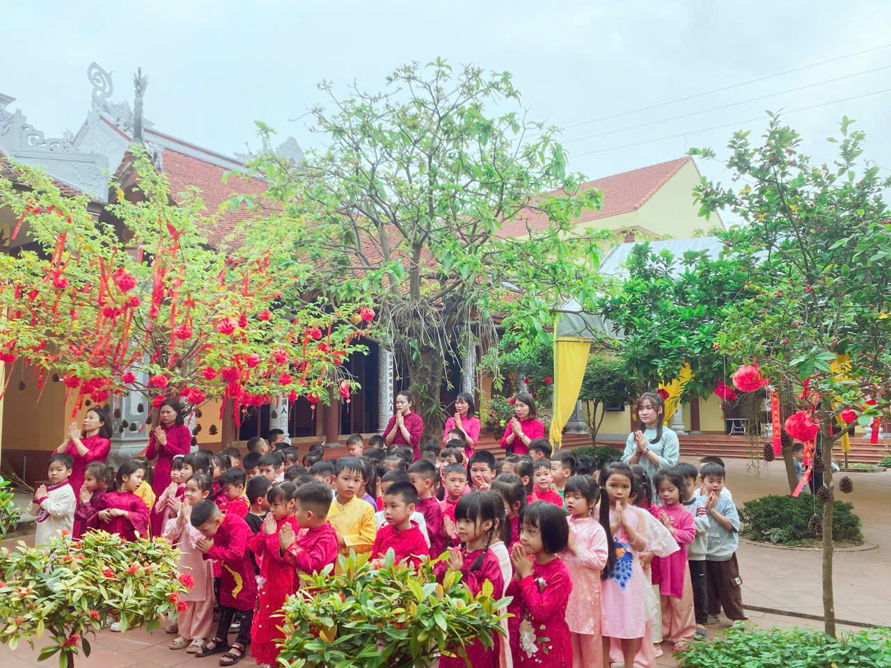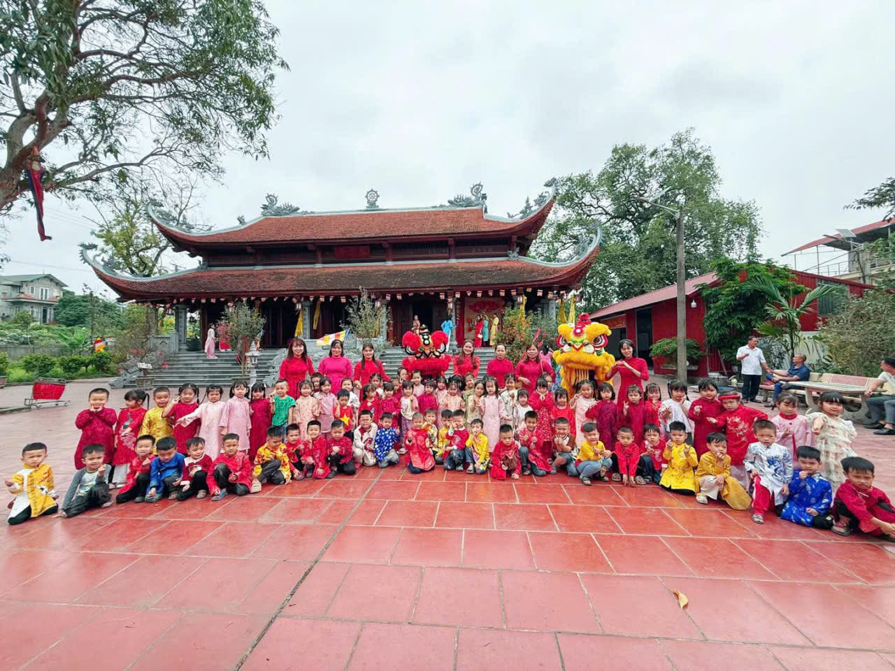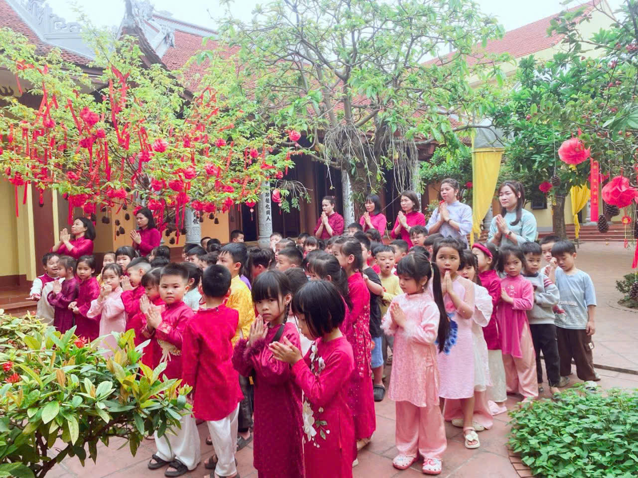 Trường mầm non Kim Thư tổ chức cho trẻ dâng lễ tại Đình, Chùa nhân dịp hội làng