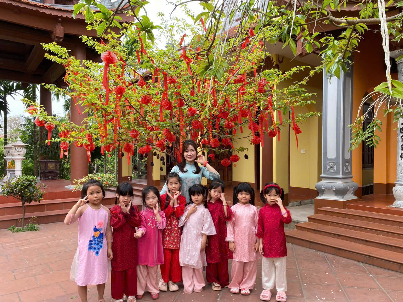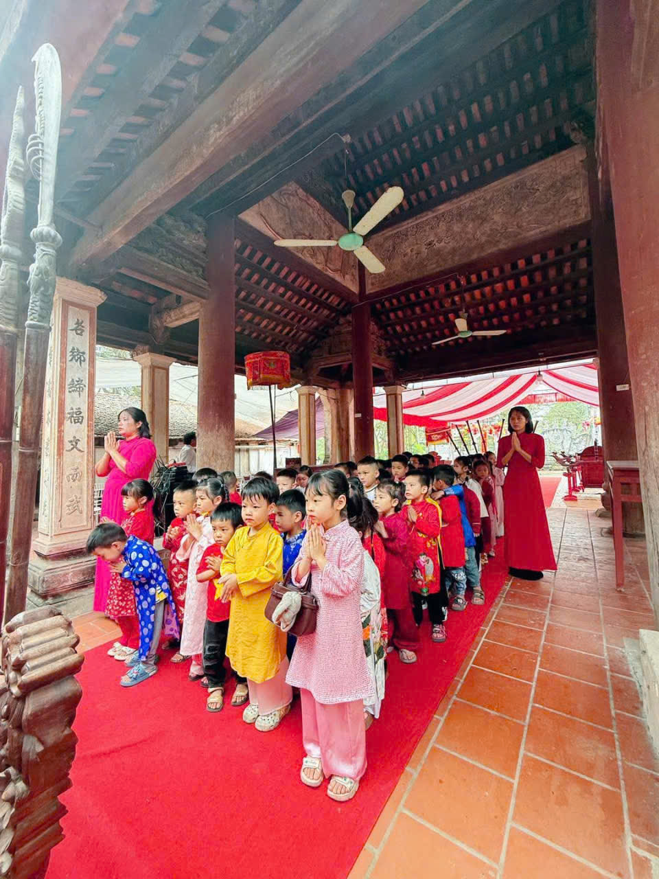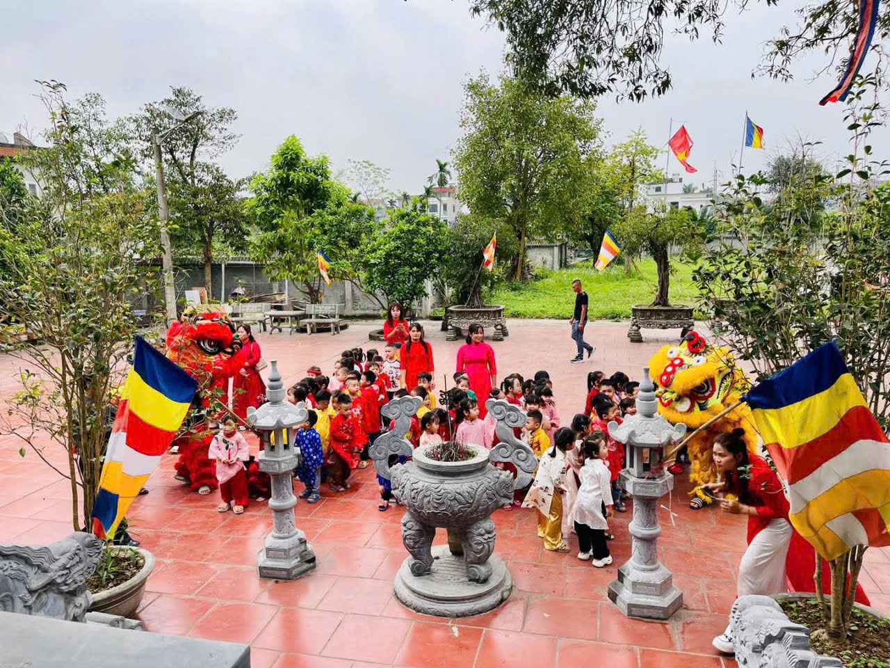 Trường mầm non Kim Thư tổ chức cho trẻ dâng lễ tại Đình, Chùa nhân dịp hội làng